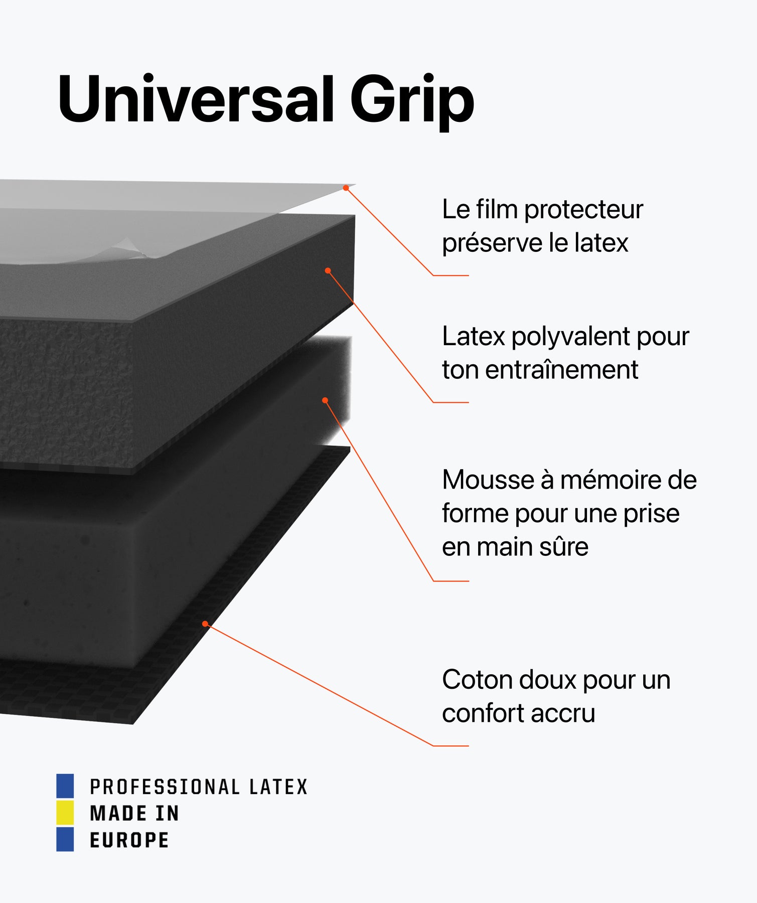 Par exemple, nous avons un latex plus résistant, spécialement conçu pour le gazon synthétique ou l'utilisation par les jeunes, et un latex spécialement conçu pour le temps humide. Cela dépend donc toujours des conditions dans lesquelles tes gants doivent être utilisés.