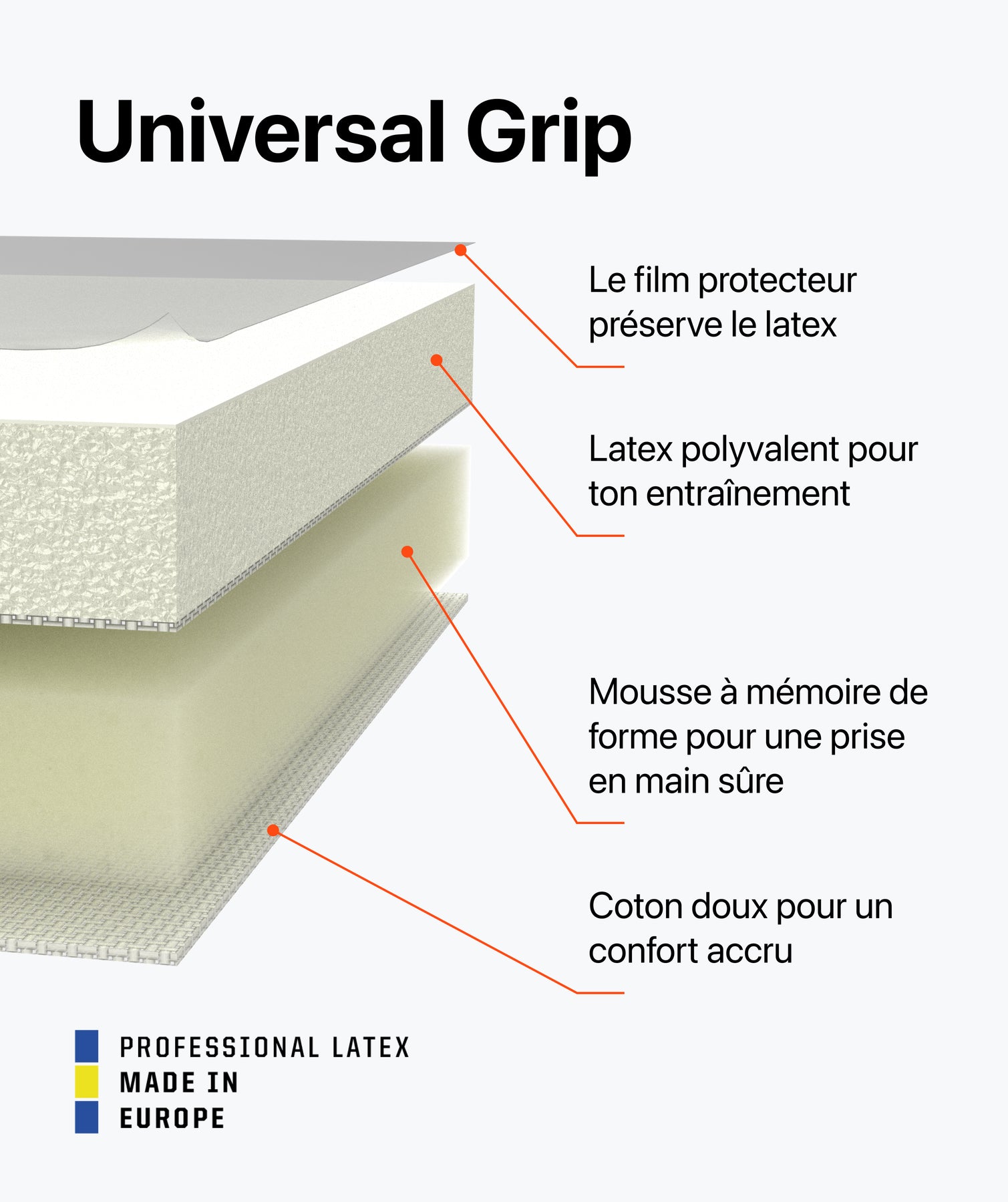 Une forte adhérence dans toutes les situations : le puissant Universal Grip de 3 mm + 5 mm vous offre une forte adhérence et un contrôle supérieur du ballon. -