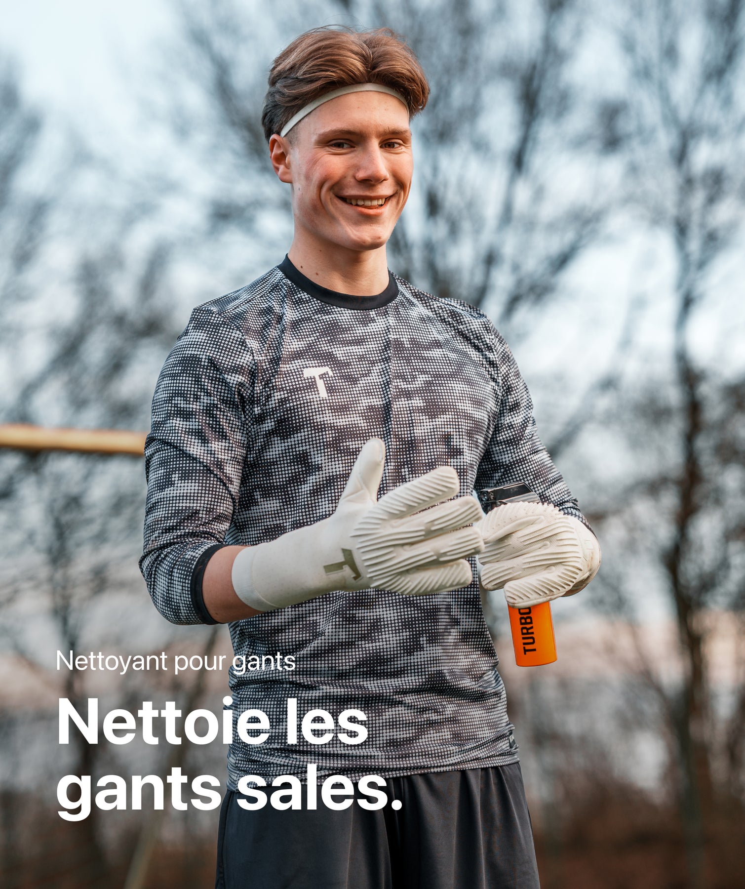Il est indispensable de laver soigneusement tes gants après chaque match et chaque séance d'entraînement et de les nettoyer avec TURBOCLEAN.