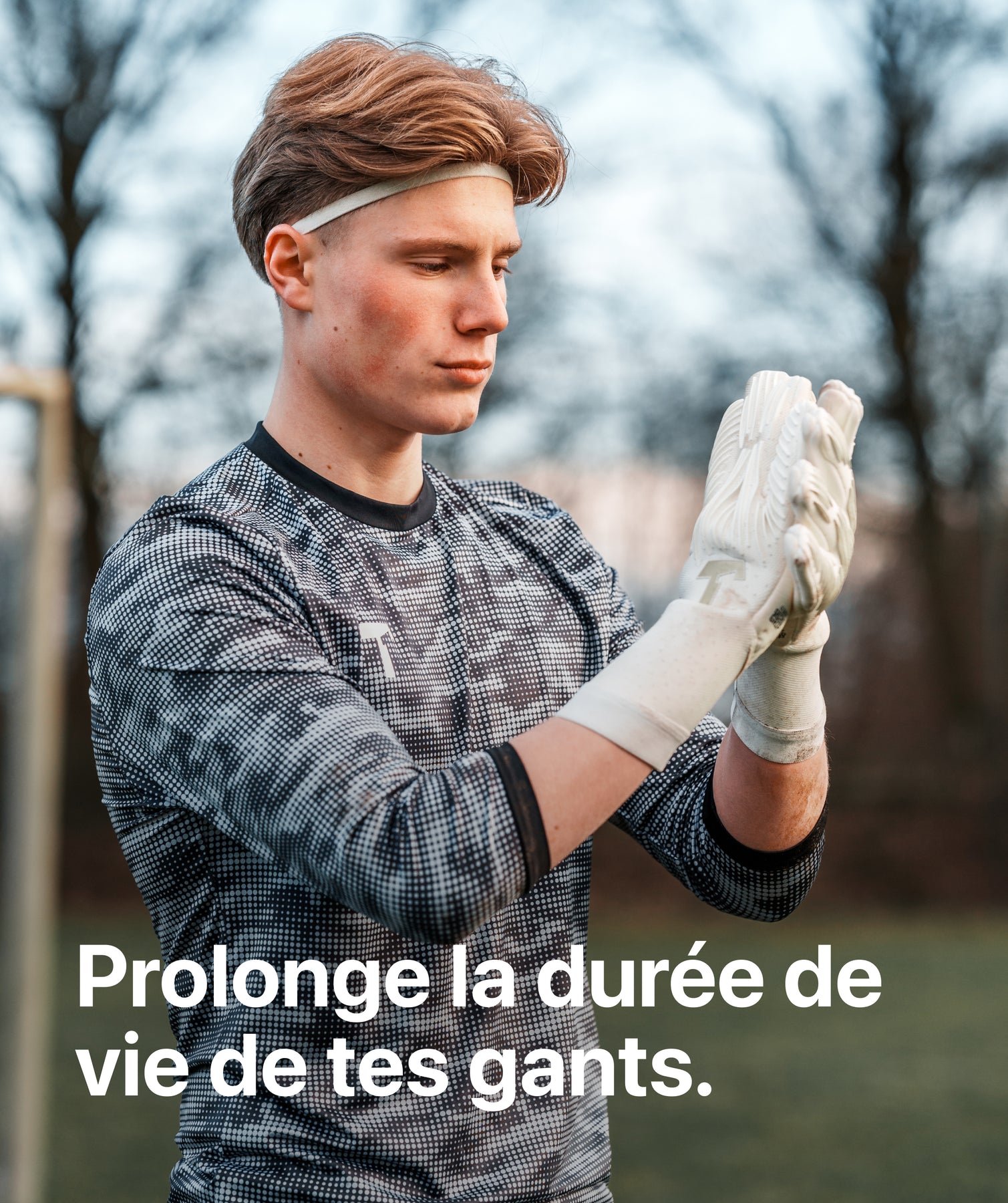 Une utilisation régulière permet à la mousse adhésive de rester souple et douce, ce qui prolonge la durée de vie de vos gants de gardien de but.