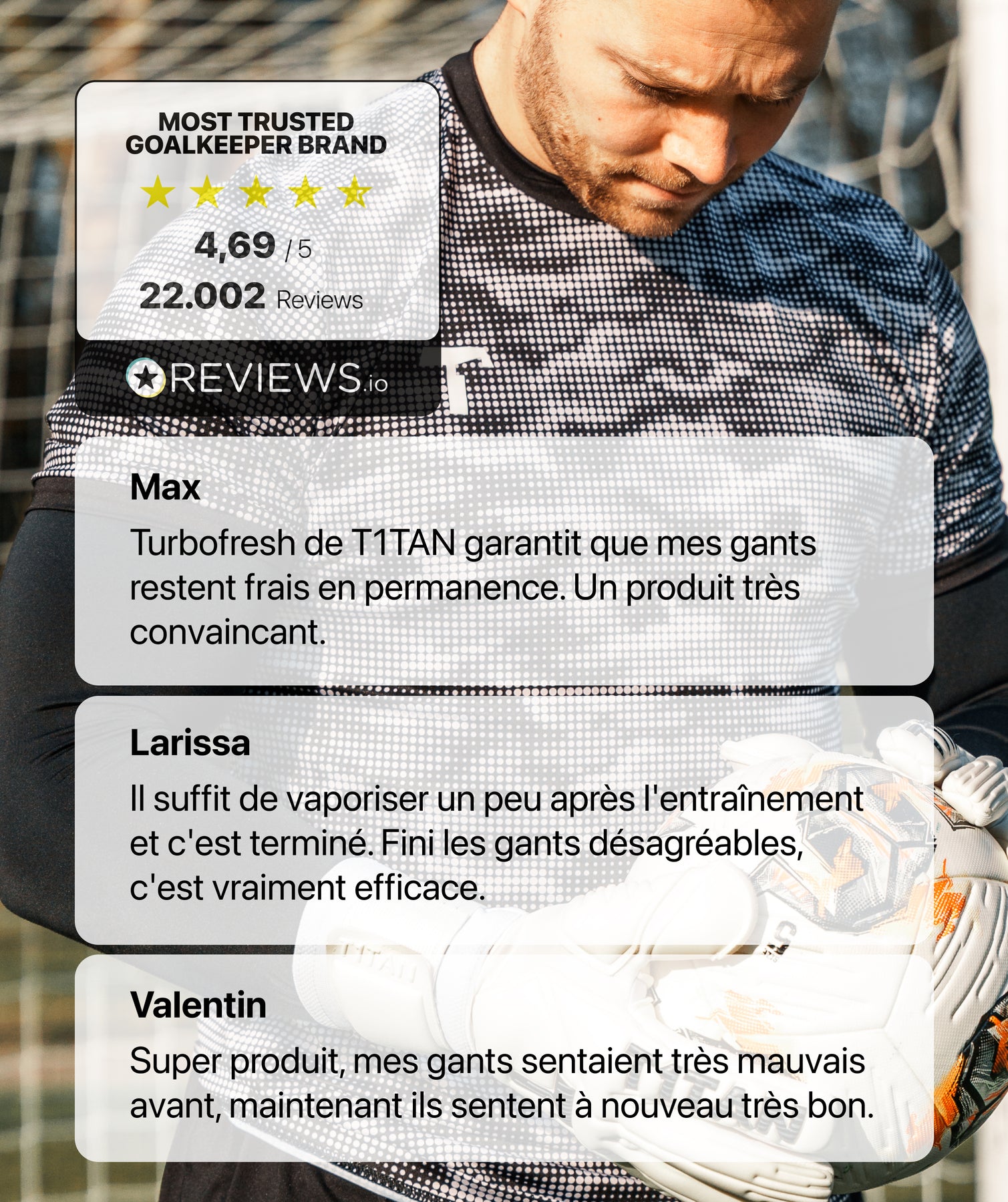 Mains moites, entraînements intenses, nombreux matchs : en tant que gardien, tu connais bien le problème. Tôt ou tard, même tes gants préférés commencent à dégager une odeur désagréable. Avec TURBOFRESH, tu évites que cela n’arrive et gardes tes gants frais, propres et hygiéniques à l’intérieur.